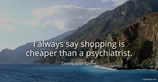 Bakker, Tammy Faye. (2026, January 14). I always say shopping is cheaper than a psychiatrist. FixQuotes. https://fixquotes.com/quotes/i-always-say-shopping-is-cheaper-than-a-95046/
