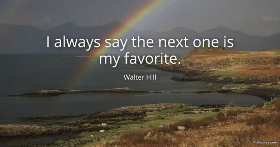 Hill, Walter. "I always say the next one is my favorite." FixQuotes. January 15, 2026. https://fixquotes.com/quotes/i-always-say-the-next-one-is-my-favorite-152805/.