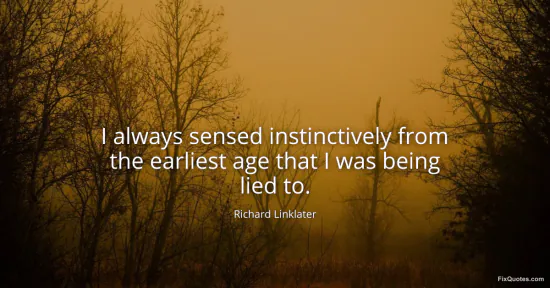 Linklater, Richard. (2026, January 15). I always sensed instinctively from the earliest age that I was being lied to. FixQuotes. https://fixquotes.com/quotes/i-always-sensed-instinctively-from-the-earliest-160817/
