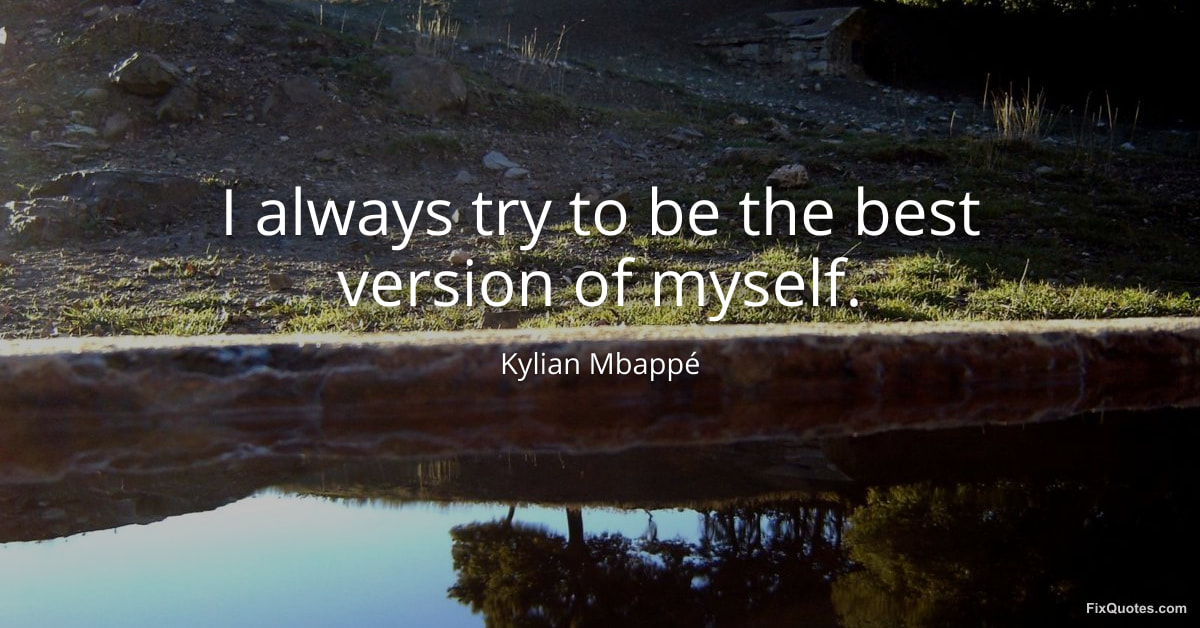 Mbappé, Kylian. (2026, January 30). I always try to be the best version of myself. FixQuotes. https://fixquotes.com/quotes/i-always-try-to-be-the-best-version-of-myself-184760/
