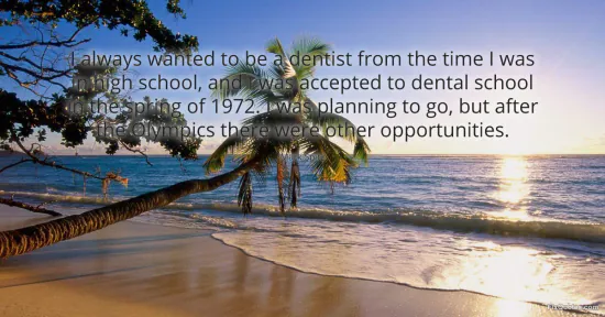 "I always wanted to be a dentist from the time I was in high school, and I was accepted to dental school in the spring of 1972. I was planning to go, but after the Olympics there were other opportunities." FixQuotes, 16 Jan. 2026, https://fixquotes.com/quotes/i-always-wanted-to-be-a-dentist-from-the-time-i-103381/. Accessed 12 Feb. 2026.