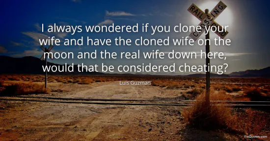 Guzman, Luis. (2026, January 16). I always wondered if you clone your wife and have the cloned wife on the moon and the real wife down here, would that be considered cheating? FixQuotes. https://fixquotes.com/quotes/i-always-wondered-if-you-clone-your-wife-and-have-125250/