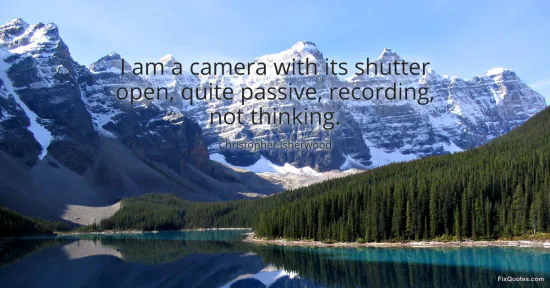 Isherwood, Christopher. (2026, January 15). I am a camera with its shutter open, quite passive, recording, not thinking. FixQuotes. https://fixquotes.com/quotes/i-am-a-camera-with-its-shutter-open-quite-passive-168821/