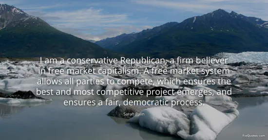 Palin, Sarah. (2026, January 14). I am a conservative Republican, a firm believer in free market capitalism. A free market system allows all parties to compete, which ensures the best and most competitive project emerges, and ensures a fair, democratic process. FixQuotes. https://fixquotes.com/quotes/i-am-a-conservative-republican-a-firm-believer-in-1744/