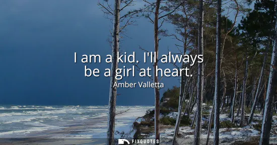 Amber Valletta evokes the stubborn spark that refuses to age on command. Saying "I am a kid. I'll always be a girl at heart" insists that playfulness, curiosity, and wonder are not traits to be outgrown but sources of resilience. It is not a denial of maturity; it is a refusal to let experience calcify into cynicism. The child within is the part that tries things, asks why, and sees possibility where habit sees limits.