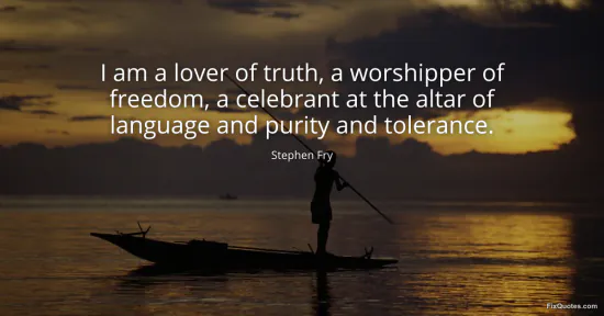 Fry, Stephen. (2026, January 15). I am a lover of truth, a worshipper of freedom, a celebrant at the altar of language and purity and tolerance. FixQuotes. https://fixquotes.com/quotes/i-am-a-lover-of-truth-a-worshipper-of-freedom-a-164568/