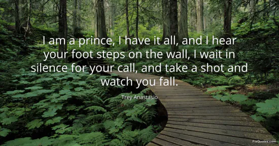 Anastasio, Trey. "I am a prince, I have it all, and I hear your foot steps on the wall, I wait in silence for your call, and take a shot and watch you fall." FixQuotes. February 18, 2026. https://fixquotes.com/quotes/i-am-a-prince-i-have-it-all-and-i-hear-your-foot-66288/.