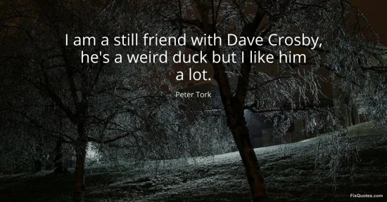 Tork, Peter. (2026, January 17). I am a still friend with Dave Crosby, he's a weird duck but I like him a lot. FixQuotes. https://fixquotes.com/quotes/i-am-a-still-friend-with-dave-crosby-hes-a-weird-70835/