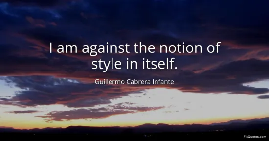 Infante, Guillermo Cabrera. (2026, January 17). I am against the notion of style in itself. FixQuotes. https://fixquotes.com/quotes/i-am-against-the-notion-of-style-in-itself-60433/