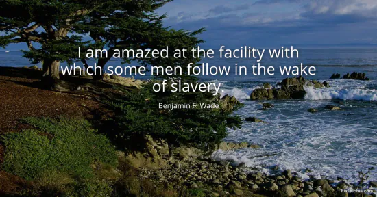 Wade, Benjamin F. (2026, January 16). I am amazed at the facility with which some men follow in the wake of slavery. FixQuotes. https://fixquotes.com/quotes/i-am-amazed-at-the-facility-with-which-some-men-138206/