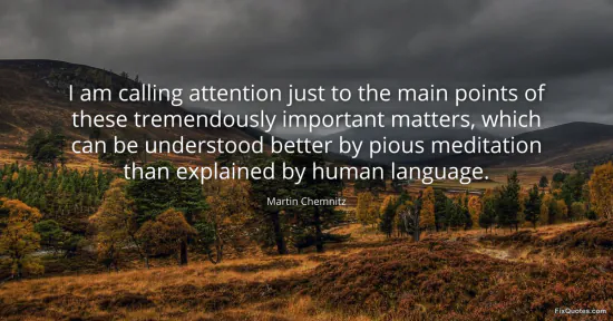 Chemnitz, Martin. (2026, January 18). I am calling attention just to the main points of these tremendously important matters, which can be understood better by pious meditation than explained by human language. FixQuotes. https://fixquotes.com/quotes/i-am-calling-attention-just-to-the-main-points-of-22724/