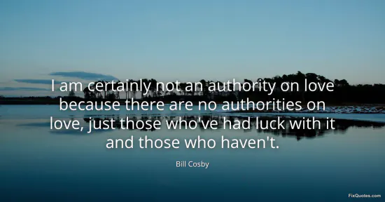 Cosby, Bill. (2026, January 15). I am certainly not an authority on love because there are no authorities on love, just those who've had luck with it and those who haven't. FixQuotes. https://fixquotes.com/quotes/i-am-certainly-not-an-authority-on-love-because-14305/