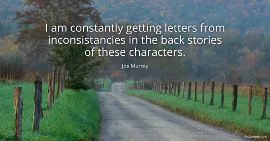 Murray, Joe. "I am constantly getting letters from inconsistancies in the back stories of these characters." FixQuotes. January 16, 2026. https://fixquotes.com/quotes/i-am-constantly-getting-letters-from-106718/.