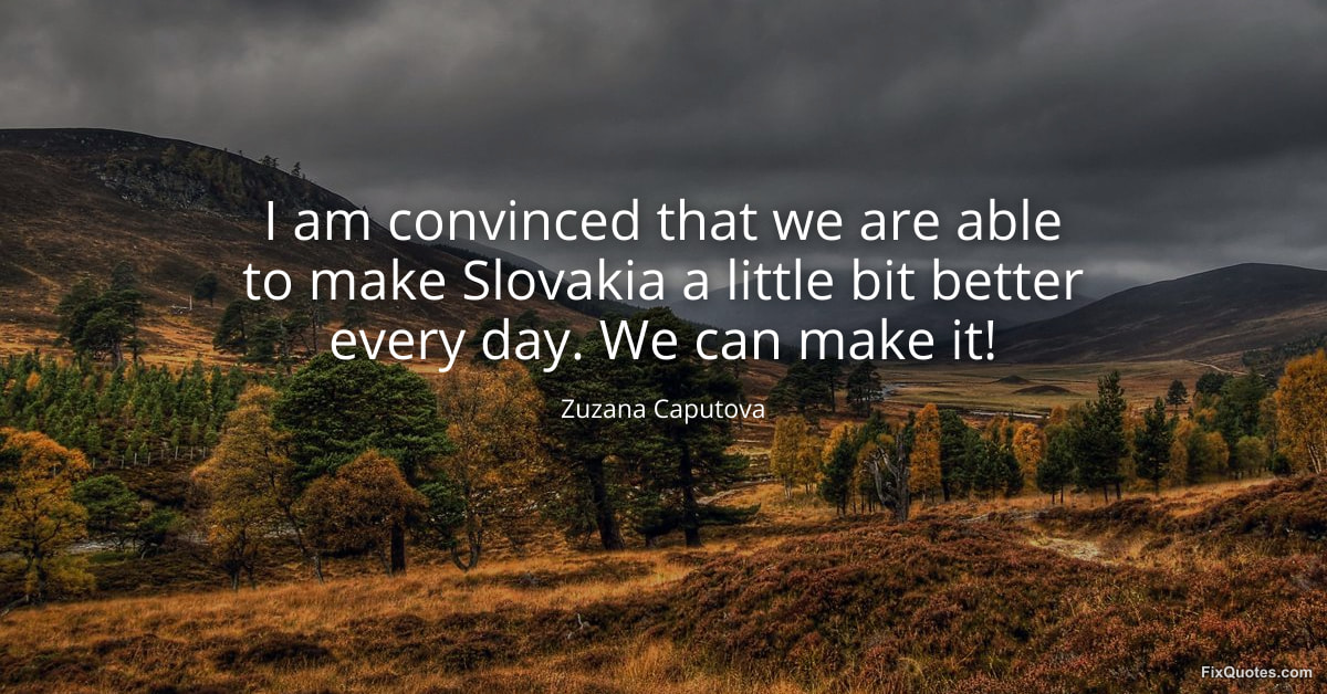 "I am convinced that we are able to make Slovakia a little bit better every day. We can make it!" FixQuotes, 16 Feb. 2026, https://fixquotes.com/quotes/i-am-convinced-that-we-are-able-to-make-slovakia-185461/. Accessed 17 Feb. 2026.