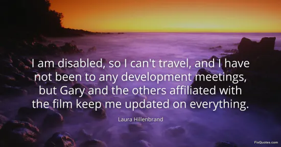 Hillenbrand, Laura. (2026, January 15). I am disabled, so I can't travel, and I have not been to any development meetings, but Gary and the others affiliated with the film keep me updated on everything. FixQuotes. https://fixquotes.com/quotes/i-am-disabled-so-i-cant-travel-and-i-have-not-155270/