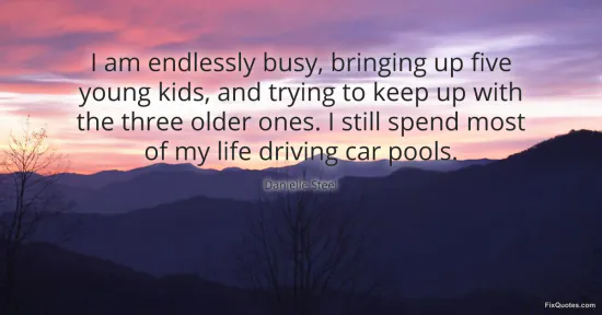 Steel, Danielle. (2026, January 16). I am endlessly busy, bringing up five young kids, and trying to keep up with the three older ones. I still spend most of my life driving car pools. FixQuotes. https://fixquotes.com/quotes/i-am-endlessly-busy-bringing-up-five-young-kids-110250/