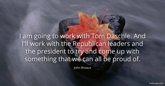 Breaux, John. (2026, January 17). I am going to work with Tom Daschle. And I'll work with the Republican leaders and the president to try and come up with something that we can all be proud of. FixQuotes. https://fixquotes.com/quotes/i-am-going-to-work-with-tom-daschle-and-ill-work-51861/