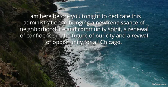 Byrne, Jane. (2026, January 16). I am here before you tonight to dedicate this administration to bringing a new renaissance of neighborhood life and community spirit, a renewal of confidence in the future of our city and a revival of opportunity for all Chicago. FixQuotes. https://fixquotes.com/quotes/i-am-here-before-you-tonight-to-dedicate-this-91303/
