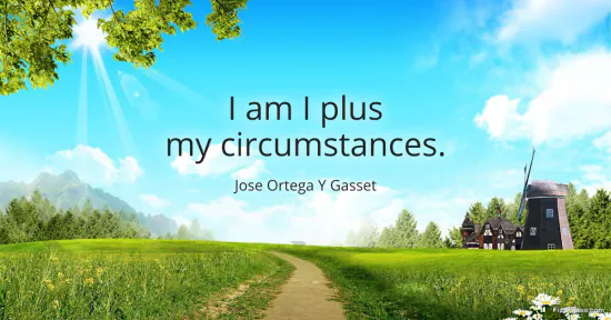 Gasset, Jose Ortega Y. "I am I plus my circumstances." FixQuotes. January 15, 2026. https://fixquotes.com/quotes/i-am-i-plus-my-circumstances-148788/.
