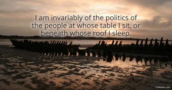 Borrow, George. (2026, January 17). I am invariably of the politics of the people at whose table I sit, or beneath whose roof I sleep. FixQuotes. https://fixquotes.com/quotes/i-am-invariably-of-the-politics-of-the-people-at-48293/