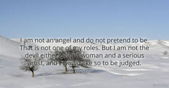 Callas, Maria. (2026, January 16). I am not an angel and do not pretend to be. That is not one of my roles. But I am not the devil either. I am a woman and a serious artist, and I would like so to be judged. FixQuotes. https://fixquotes.com/quotes/i-am-not-an-angel-and-do-not-pretend-to-be-that-93555/