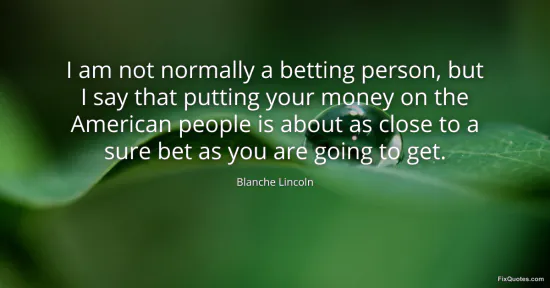 Lincoln, Blanche. (2026, January 17). I am not normally a betting person, but I say that putting your money on the American people is about as close to a sure bet as you are going to get. FixQuotes. https://fixquotes.com/quotes/i-am-not-normally-a-betting-person-but-i-say-that-38701/