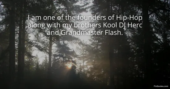 Bambaataa, Afrika. "I am one of the founders of Hip-Hop along with my brothers Kool DJ Herc and Grandmaster Flash." FixQuotes. January 15, 2026. https://fixquotes.com/quotes/i-am-one-of-the-founders-of-hip-hop-along-with-my-43703/.