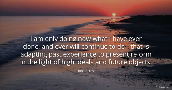 Burns, John. (2026, February 16). I am only doing now what I have ever done, and ever will continue to do - that is adapting past experience to present reform in the light of high ideals and future objects. FixQuotes. https://fixquotes.com/quotes/i-am-only-doing-now-what-i-have-ever-done-and-160519/