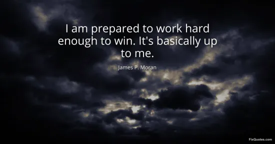 The sharper move is the pivot: "It’s basically up to me". That "basically" matters. It nods at the reality that elections are ecosystems - donors, party machinery, consultants, media cycles, turnout operations, the national mood - while rhetorically erasing them. The subtext is control. In a profession defined by coalition and compromise, Moran frames victory as an individual test, not a collective negotiation. That posture helps in two directions at once: it casts him as accountable (no excuses, no blame-shifting) and it subtly disarms criticism about external advantages or institutional backing.