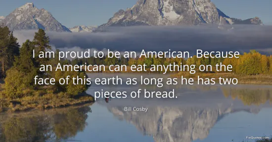 Cosby, Bill. (2026, January 18). I am proud to be an American. Because an American can eat anything on the face of this earth as long as he has two pieces of bread. FixQuotes. https://fixquotes.com/quotes/i-am-proud-to-be-an-american-because-an-american-14306/