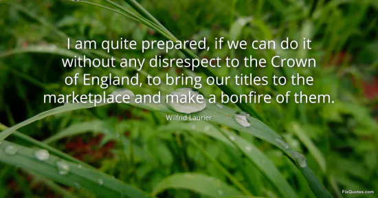 Laurier, Wilfrid. "I am quite prepared, if we can do it without any disrespect to the Crown of England, to bring our titles to the marketplace and make a bonfire of them." FixQuotes. January 15, 2026. https://fixquotes.com/quotes/i-am-quite-prepared-if-we-can-do-it-without-any-166830/.