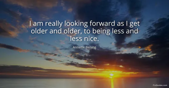 Bening, Annette. (2026, January 16). I am really looking forward as I get older and older, to being less and less nice. FixQuotes. https://fixquotes.com/quotes/i-am-really-looking-forward-as-i-get-older-and-135366/