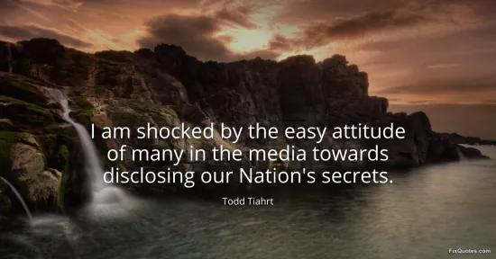 Tiahrt, Todd. (2026, January 15). I am shocked by the easy attitude of many in the media towards disclosing our Nation's secrets. FixQuotes. https://fixquotes.com/quotes/i-am-shocked-by-the-easy-attitude-of-many-in-the-152636/