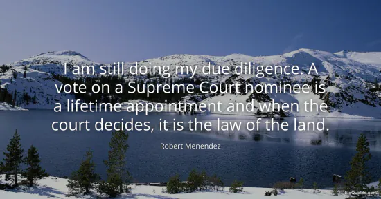 Menendez, Robert. (2026, January 15). I am still doing my due diligence. A vote on a Supreme Court nominee is a lifetime appointment and when the court decides, it is the law of the land. FixQuotes. https://fixquotes.com/quotes/i-am-still-doing-my-due-diligence-a-vote-on-a-116263/