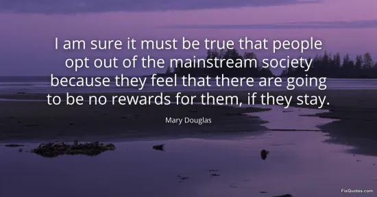 Douglas, Mary. "I am sure it must be true that people opt out of the mainstream society because they feel that there are going to be no rewards for them, if they stay." FixQuotes. January 15, 2026. https://fixquotes.com/quotes/i-am-sure-it-must-be-true-that-people-opt-out-of-82533/.