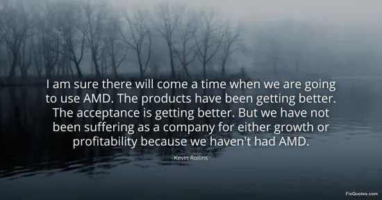 Rollins, Kevin. "I am sure there will come a time when we are going to use AMD. The products have been getting better. The acceptance is getting better. But we have not been suffering as a company for either growth or profitability because we haven't had AMD." FixQuotes. January 15, 2026. https://fixquotes.com/quotes/i-am-sure-there-will-come-a-time-when-we-are-161088/.