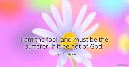 Southcott, Joanna. (2026, January 18). I am the fool, and must be the sufferer, if it be not of God. FixQuotes. https://fixquotes.com/quotes/i-am-the-fool-and-must-be-the-sufferer-if-it-be-12023/