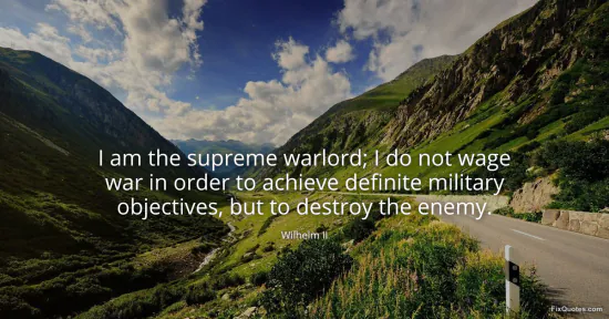 II, Wilhelm. "I am the supreme warlord; I do not wage war in order to achieve definite military objectives, but to destroy the enemy." FixQuotes. January 15, 2026. https://fixquotes.com/quotes/i-am-the-supreme-warlord-i-do-not-wage-war-in-172167/.