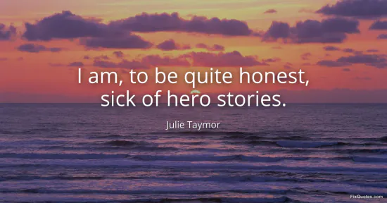 Taymor, Julie. (2026, January 16). I am, to be quite honest, sick of hero stories. FixQuotes. https://fixquotes.com/quotes/i-am-to-be-quite-honest-sick-of-hero-stories-129716/
