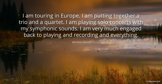 Vitous, Miroslav. "I am touring in Europe. I am putting together a trio and a quartet. I am playing solo concerts with my symphonic sounds. I am very much engaged back to playing and recording and everything." FixQuotes. January 15, 2026. https://fixquotes.com/quotes/i-am-touring-in-europe-i-am-putting-together-a-147757/.