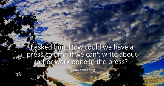 Schanberg, Sydney. (2026, January 15). I asked him, How could we have a press column if we can't write about other work done in the press? FixQuotes. https://fixquotes.com/quotes/i-asked-him-how-could-we-have-a-press-column-if-157411/