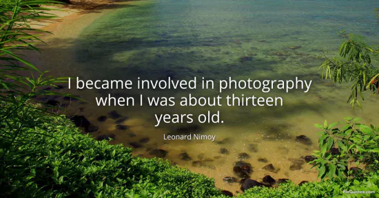 Nimoy, Leonard. (2026, January 17). I became involved in photography when I was about thirteen years old. FixQuotes. https://fixquotes.com/quotes/i-became-involved-in-photography-when-i-was-about-54847/