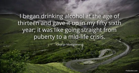 Montgomery, George. (2026, January 16). I began drinking alcohol at the age of thirteen and gave it up in my fifty sixth year; it was like going straight from puberty to a mid-life crisis. FixQuotes. https://fixquotes.com/quotes/i-began-drinking-alcohol-at-the-age-of-thirteen-112381/