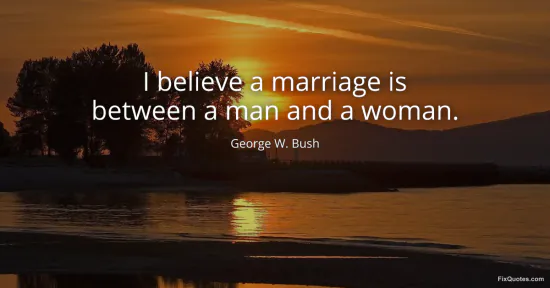 Bush, George W. "I believe a marriage is between a man and a woman." FixQuotes. January 15, 2026. https://fixquotes.com/quotes/i-believe-a-marriage-is-between-a-man-and-a-woman-7267/.