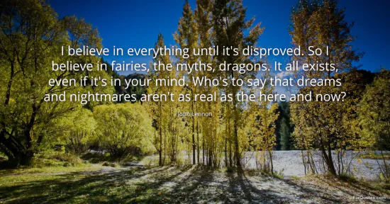 Lennon, John. "I believe in everything until it's disproved. So I believe in fairies, the myths, dragons. It all exists, even if it's in your mind. Who's to say that dreams and nightmares aren't as real as the here and now?" FixQuotes. January 17, 2026. https://fixquotes.com/quotes/i-believe-in-everything-until-its-disproved-so-i-24840/.