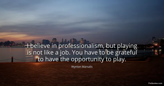 Marsalis, Wynton. (2026, January 16). I believe in professionalism, but playing is not like a job. You have to be grateful to have the opportunity to play. FixQuotes. https://fixquotes.com/quotes/i-believe-in-professionalism-but-playing-is-not-129590/