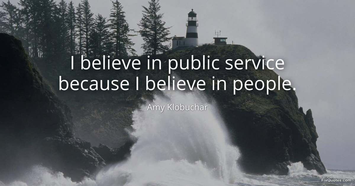 Klobuchar, Amy. (2026, January 30). I believe in public service because I believe in people. FixQuotes. https://fixquotes.com/quotes/i-believe-in-public-service-because-i-believe-in-184783/