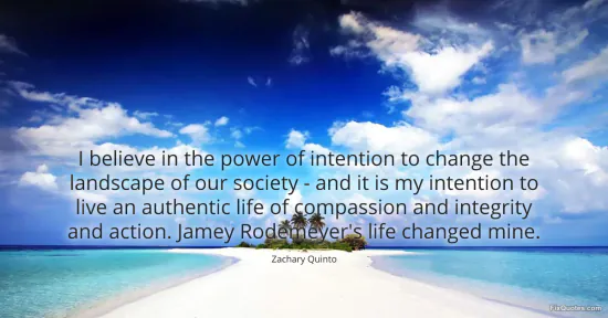 Quinto, Zachary. "I believe in the power of intention to change the landscape of our society - and it is my intention to live an authentic life of compassion and integrity and action. Jamey Rodemeyer's life changed mine." FixQuotes. January 16, 2026. https://fixquotes.com/quotes/i-believe-in-the-power-of-intention-to-change-the-108507/.