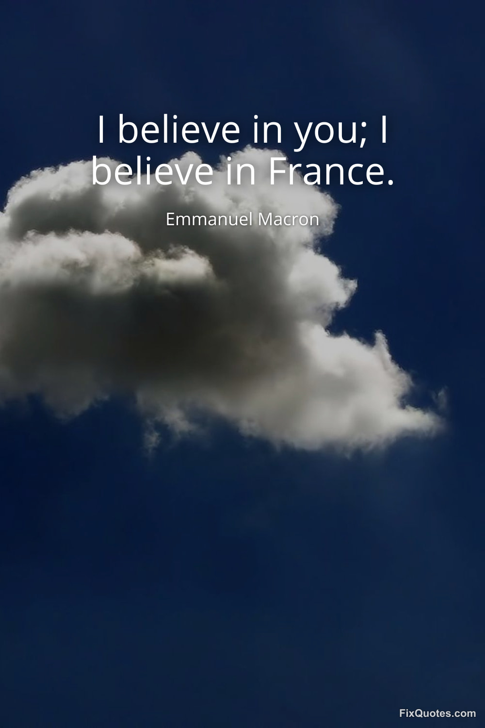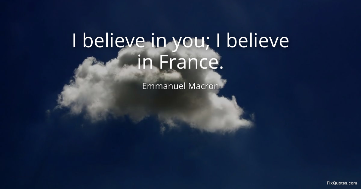 Macron, Emmanuel. "I believe in you; I believe in France." FixQuotes. January 26, 2026. https://fixquotes.com/quotes/i-believe-in-you-i-believe-in-france-184451/.