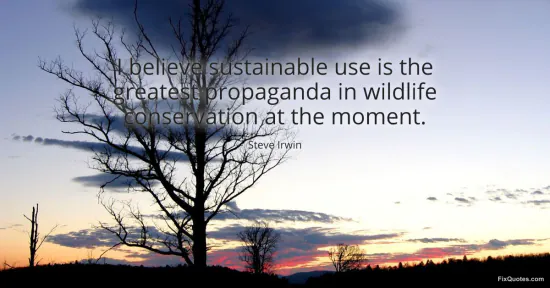 Irwin, Steve. (2026, January 14). I believe sustainable use is the greatest propaganda in wildlife conservation at the moment. FixQuotes. https://fixquotes.com/quotes/i-believe-sustainable-use-is-the-greatest-151450/